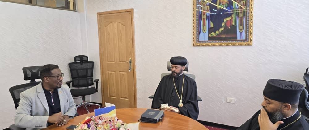 ብፁዕ አቡነ ሕርያቆስ ሊቀ ጳጳስ ከኢትዮጵያ ሃይማኖት ተቋማት ጉባኤ ጠቅላይ ጸሐፊ ሊቀ ትጉኃን ቀሲስ ታጋይ ታደለ ጋር በጽሕፈት ቤታቸው ውይይት አደረጉ